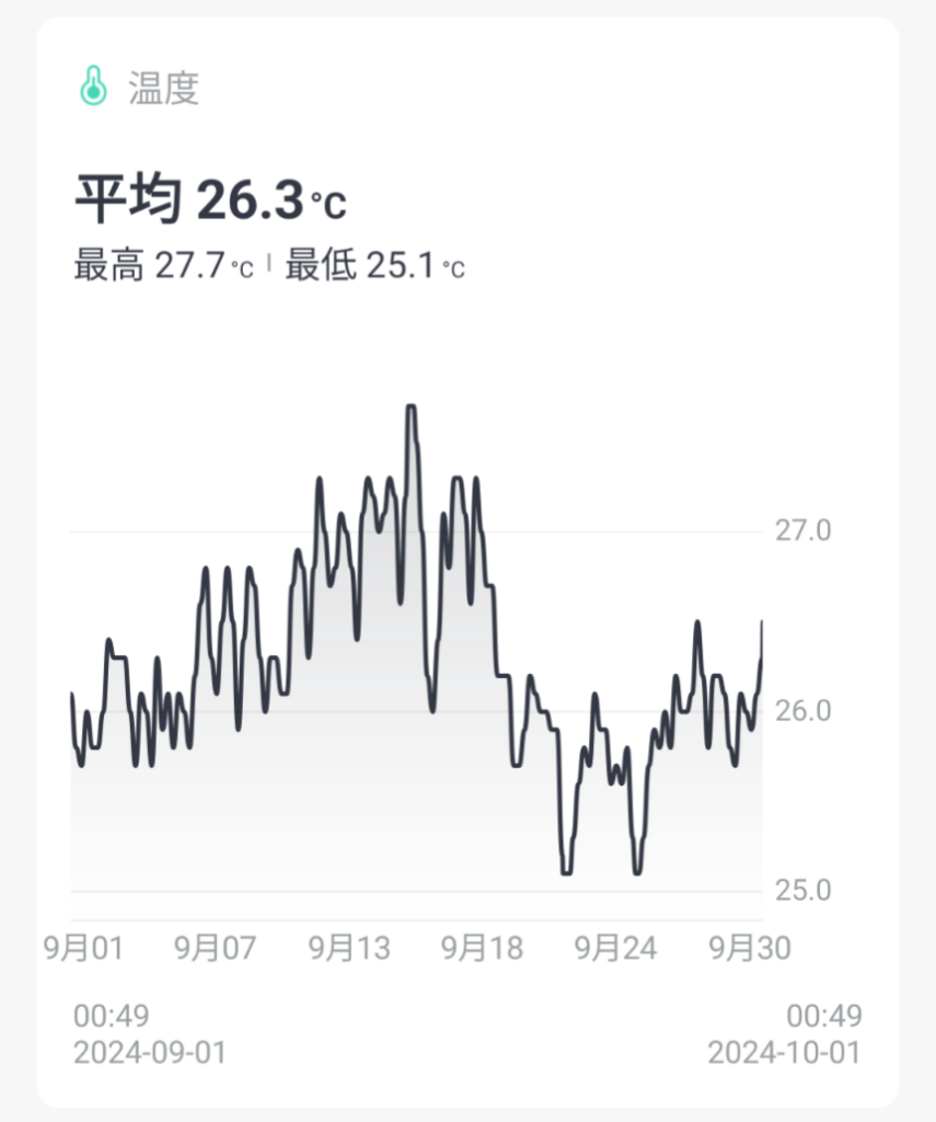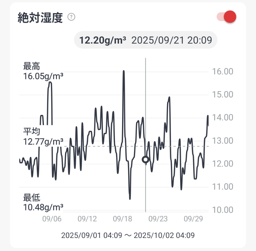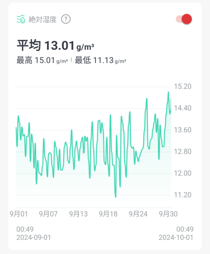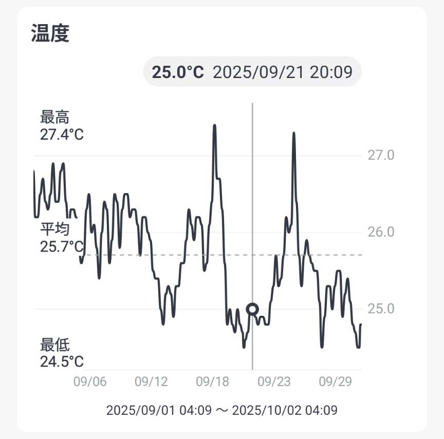 続いて同じ部屋で去年、2024年9月の温湿度はどうなっていたかというと…。