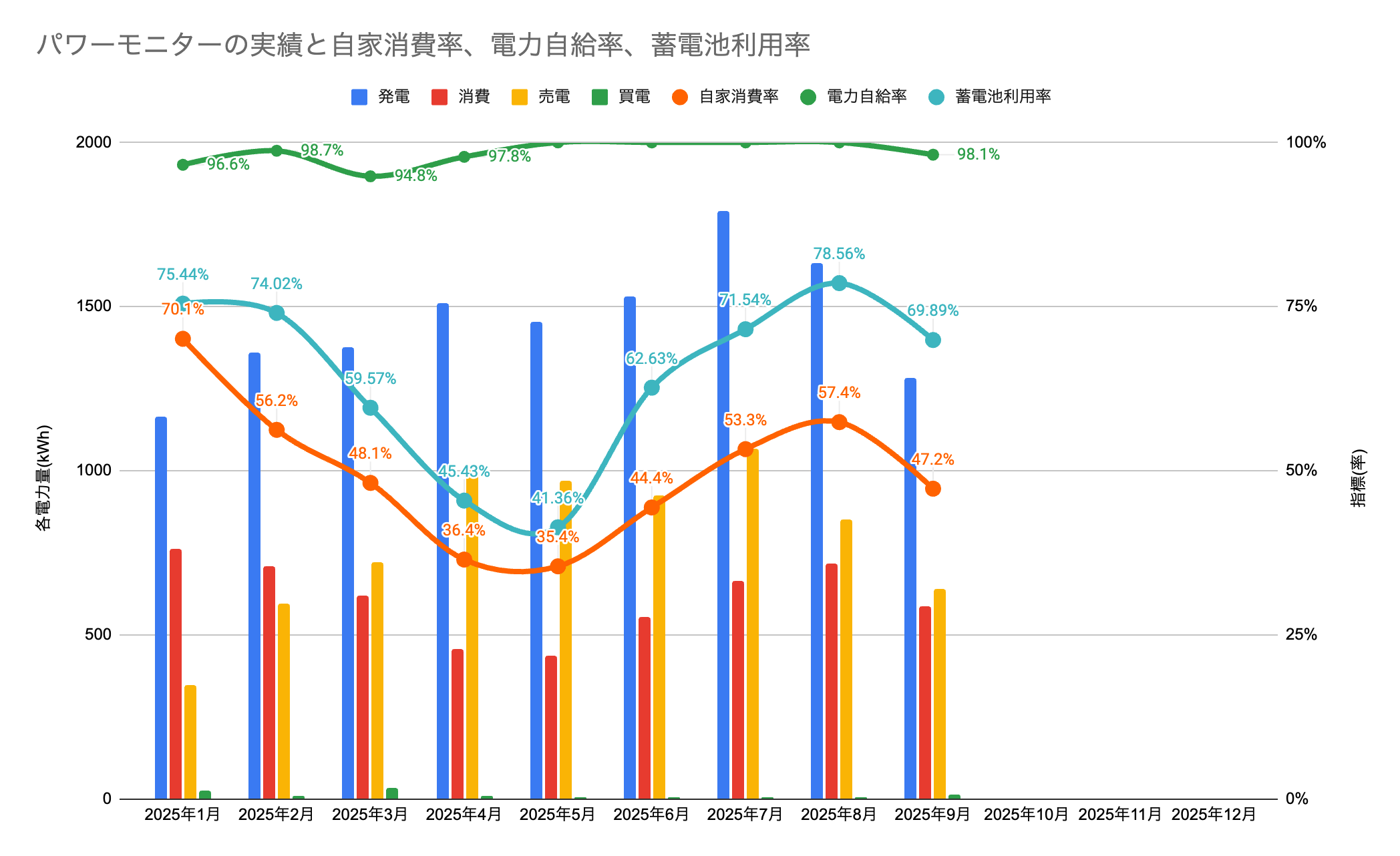 まだまだ残暑の厳しい9月でした。暑さのピークは過ぎたといえ秋分を迎えて太陽光の発電も落ちてきているので、曇りや雨の日は蓄電池への充電が気になる時期になってきました。