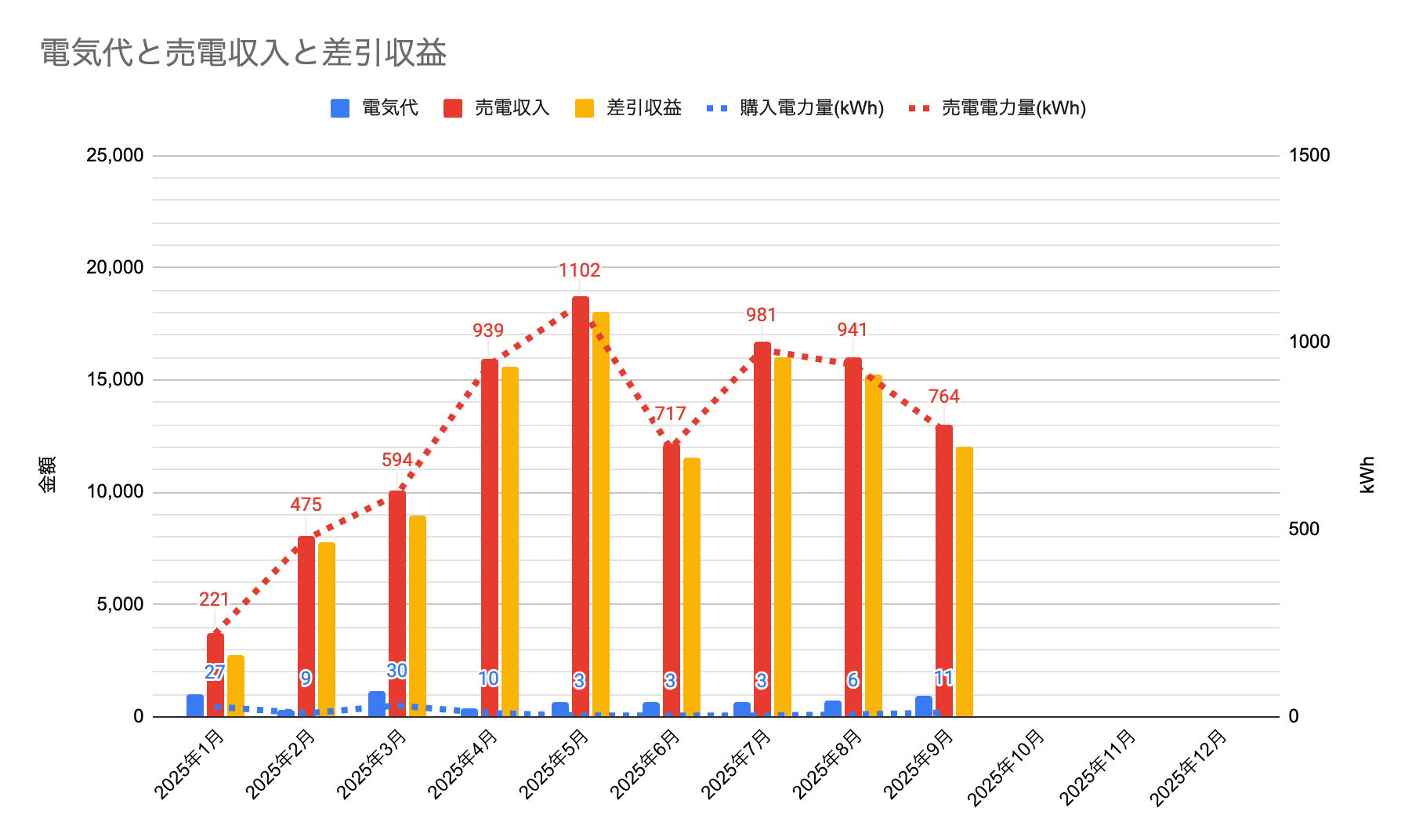 2025年9月の電気代(一条工務店i-smile+と蓄電池2台)