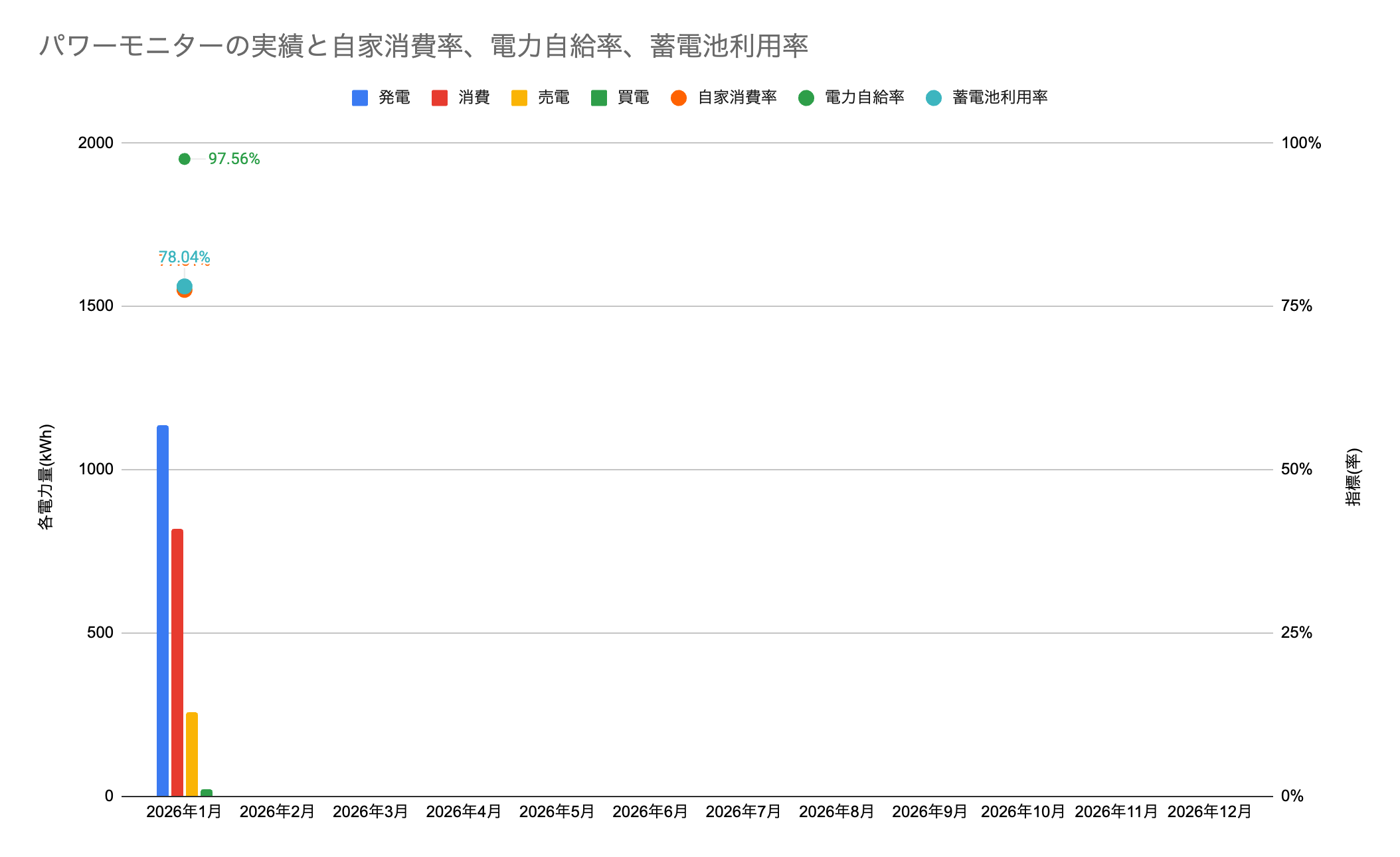 パワーモニターからみた1月(1月1日〜1月31日)の実績です