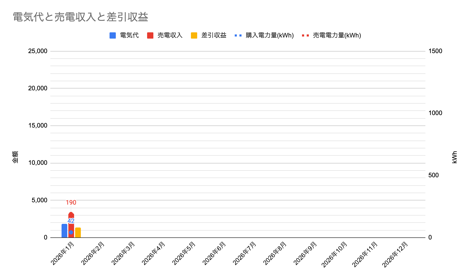 電気代と売電収入と収益